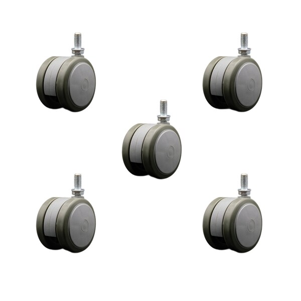 Listing is for 5 five 2-3/8'' diameter gray twin wheel non-marking thermoplastic rubber chair, light furniture and fixture casters witha 3/8'' diameter 16 TPI x 3/4'' length threaded stem. Supports up to 100lbs per caster or 500 lbs. total. When searching for a reliable, mobile solution to your furniture needs, consider Service Casters Series 02 thermoplastic rubber twin wheel casters. With dependable functionality these casters are the perfect solution as new or replacement parts for chairs, tables, medical carts, or other home and office furniture. These casters are excellent in floor protection and offer an easy rolling and quiet ride. An ideal replacement for standard hard nylon wheel casters, Service Caster's Series 02 thermoplastic rubber twin wheel casters, will not mark, mar, or scuff wood, tile, or any other hard surface. With the finest craftsmanship and quality materials, these casters are built solid and ready to roll. Service Caster is unsurpassed in quality, reliability, and excellent customer service. Count on us to move you forward.