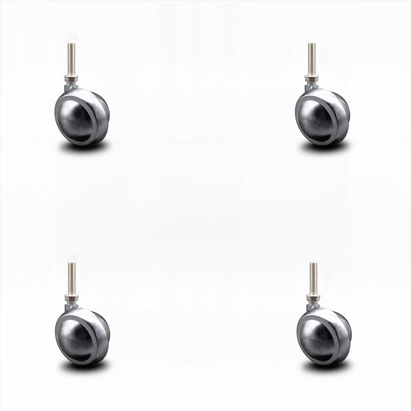 2 Inch Bright Chrome Metal Ball Caster - 3/8 Inch Threaded Stem - SCC, 4PK