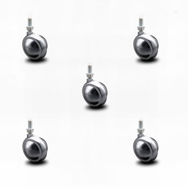 2 Inch Bright Chrome Metal Ball Caster - 3/8 Inch Threaded Stem - SCC, 5PK