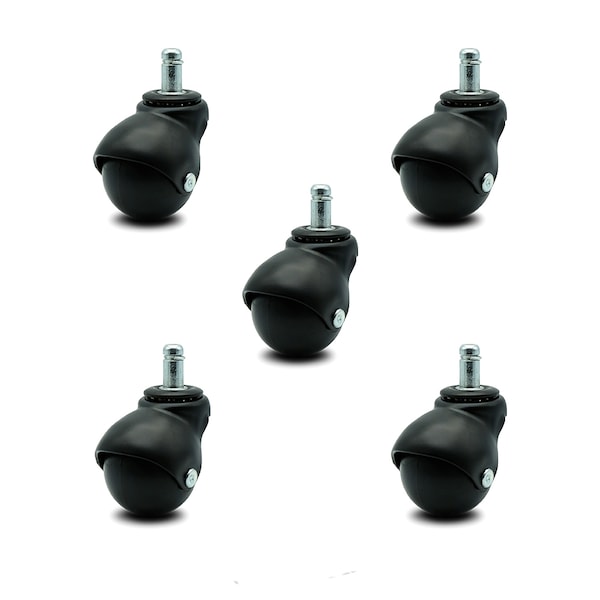 Listing is for five (5) 2" diameter spherical polyolefin wheel light furniture and fixture casters with 7/16" diameter x 7/8" length grip ring stem and hooded flat black finish. Supports up to 75lbs/caster.When searching for a reliable, mobile solution to your furniture needs, consider Service Caster’s Series 01 spherical ball casters. Combining dependable functionality with classic aesthetic, these decorative ball casters are the perfect solution as new or replacement parts for chairs, tables, medical carts, or other home and office furniture. The attractive hooded design is made from die cast zinc in a flat black finish, adding a subtle but compelling look to the fixture to which it is paired. The Series 01 features dual ball bearing raceway construction, heat treated for added durability. Where mounting space is limited, the grip ring stem- also known as friction ring stem- provides a stable, secure fit into drilled or cast holes. Note: This item is NOT recommended for use on hardwood or laminate flooring. Service Caster is unsurpassed in quality, reliability, and excellent customer service. Count on us to move you forward.