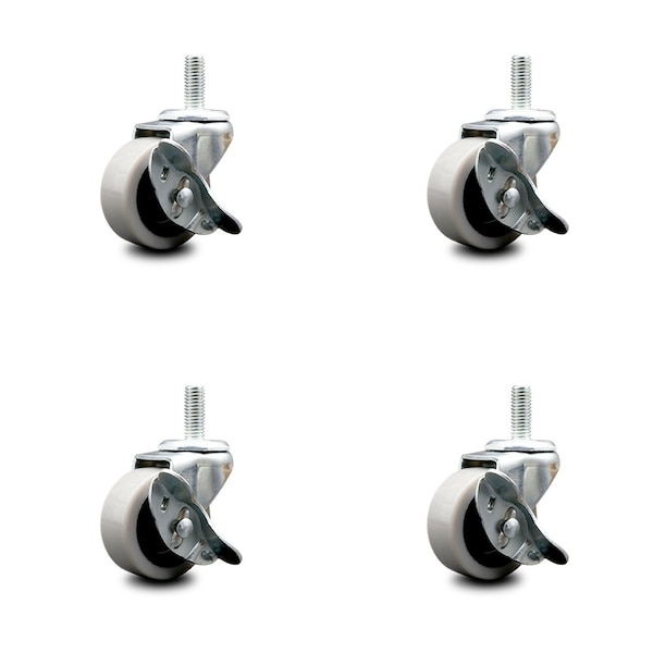 2 Inch Polyurethane Wheel 3/8 Threaded Stem Caster Set with Brakes SCC, 4PK