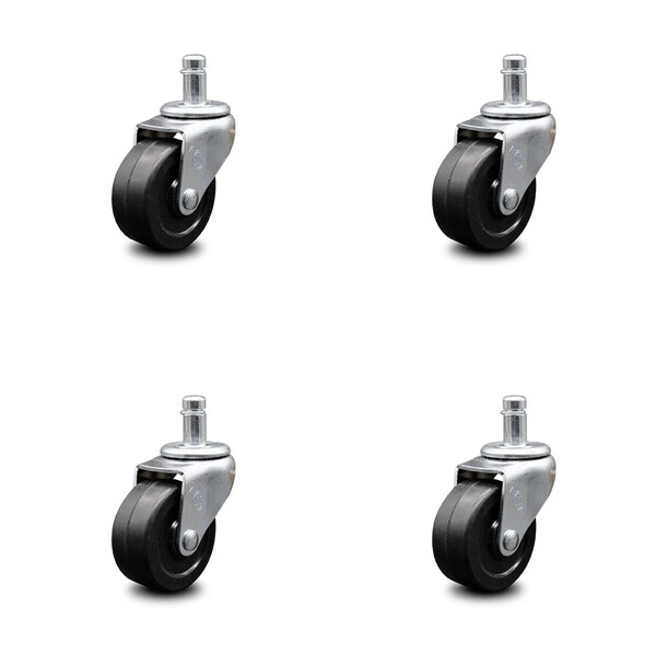 2 Inch Soft Rubber Wheel 7/8 Grip Ring Stem Caster, 4PK
