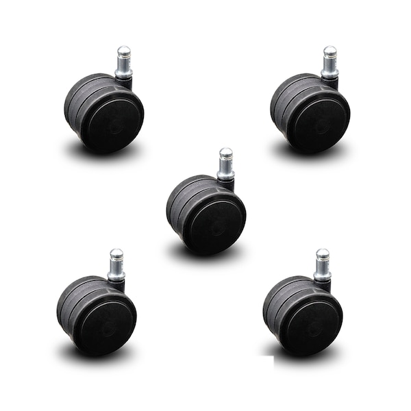 Listing is for five (5) 2.375" diameter black twin wheel thermoplastic rubber chair, light furniture and fixture casters with a 7/16" diameter x 7/8" length grip ring stem. Supports up to 100lbs per caster.When searching for a reliable, mobile solution to your furniture needs, consider Service Caster’s Series 02 thermoplastic rubber twin wheel casters. With dependable functionality these casters are the perfect solution as new or replacement parts for chairs, tables, medical carts, or other home and office furniture. These casters are excellent in floor protection and offer a easy rolling and quiet ride. An ideal replacement for standard hard nylon wheel casters, Service Caster's Series 02 thermoplastic rubber twin wheel casters and will not mark, mar, or scuff wood, tile, or any other hard surface. With the finest craftsmanship and quality materials, these casters are built solid and ready to roll. Service Caster is unsurpassed in quality, reliability, and excellent customer service. Count on us to move you forward.
