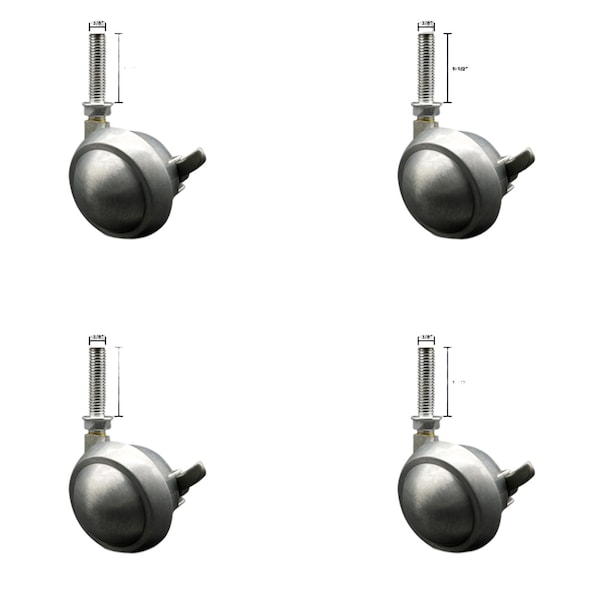 Listing is for four 4 2-1/2'' diameter metal ball light furniture and fixture casters with 3/8'' diameter 16 TPI x 1-1/2'' threaded stem and bright chrome finish with brake. Supports up to 100 lbs. per caster. When searching for a reliable, mobile solution to your furniture needs, consider Service Caster's Series 01 ball casters. Combining dependable functionality with classic aesthetic, these decorative ball casters are the perfect solution as new or replacement parts for chairs, tables, medical carts, or other home and office furniture. Made with the finest craftsmanship and quality materials, these casters are built solid and ready to roll. Service Caster is unsurpassed in quality, reliability, and excellent customer service. Count on us to move you forward.