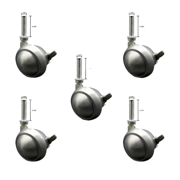 Listing is for five 5 2-1/2'' diameter metal ball light furniture and fixture casters with 3/8'' diameter 16 TPI x 1-1/2'' threaded stem and bright chrome finish with brake. Supports up to 100 lbs. per caster. When searching for a reliable, mobile solution to your furniture needs, consider Service Caster's Series 01 ball casters. Combining dependable functionality with classic aesthetic, these decorative ball casters are the perfect solution as new or replacement parts for chairs, tables, medical carts, or other home and office furniture. Made with the finest craftsmanship and quality materials, these casters are built solid and ready to roll. Service Caster is unsurpassed in quality, reliability, and excellent customer service. Count on us to move you forward.