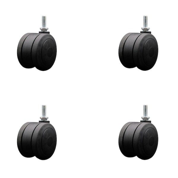 Listing is for 4 four 3'' diameter extra large heavy duty black twin wheel non-marking thermoplastic rubber chair, light furniture and fixture casters witha 3/8'' diameter 16 TPI x 1'' length threaded stem. Supports up to 165lbs per caster or 660 lbs. total. When searching for a reliable, mobile solution to your furniture needs, consider Service Casters Series 02 thermoplastic rubber twin wheel casters. With dependable functionality these casters are the perfect solution as new or replacement parts for chairs, tables, medical carts, or other home and office furniture. These casters are excellent in floor protection and offer an easy rolling and quiet ride. An ideal replacement for standard hard nylon wheel casters, Service Caster's Series 02 thermoplastic rubber twin wheel casters, will not mark, mar, or scuff wood, tile, or any other hard surface. With the finest craftsmanship and quality materials, these casters are built solid and ready to roll. Service Caster is unsurpassed in quality, reliability, and excellent customer service. Count on us to move you forward.
