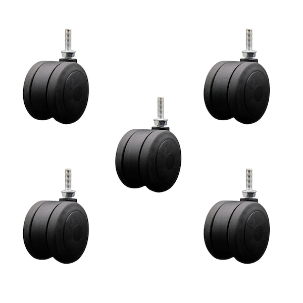 Listing is for 5 five 3'' diameter extra large heavy duty black twin wheel non-marking thermoplastic rubber chair, light furniture and fixture casters witha 5/16'' diameter 18 TPI x 1'' length threaded stem. Supports up to 165lbs per caster or 825 lbs. total. When searching for a reliable, mobile solution to your furniture needs, consider Service Casters Series 02 thermoplastic rubber twin wheel casters. With dependable functionality these casters are the perfect solution as new or replacement parts for chairs, tables, medical carts, or other home and office furniture. These casters are excellent in floor protection and offer an easy rolling and quiet ride. An ideal replacement for standard hard nylon wheel casters, Service Caster's Series 02 thermoplastic rubber twin wheel casters, will not mark, mar, or scuff wood, tile, or any other hard surface. With the finest craftsmanship and quality materials, these casters are built solid and ready to roll. Service Caster is unsurpassed in quality, reliability, and excellent customer service. Count on us to move you forward.
