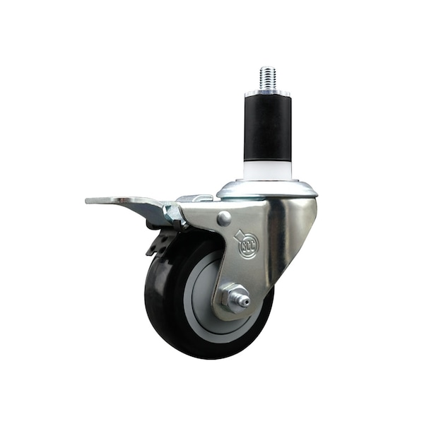 3'' Black Poly Swivel 1-1/2'' Expanding Stem Caster Total Lock Brake