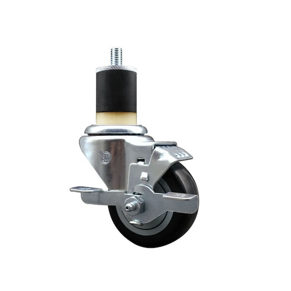 3'' Black Poly Swivel 1-7/8'' Expanding Stem Caster with Brake
