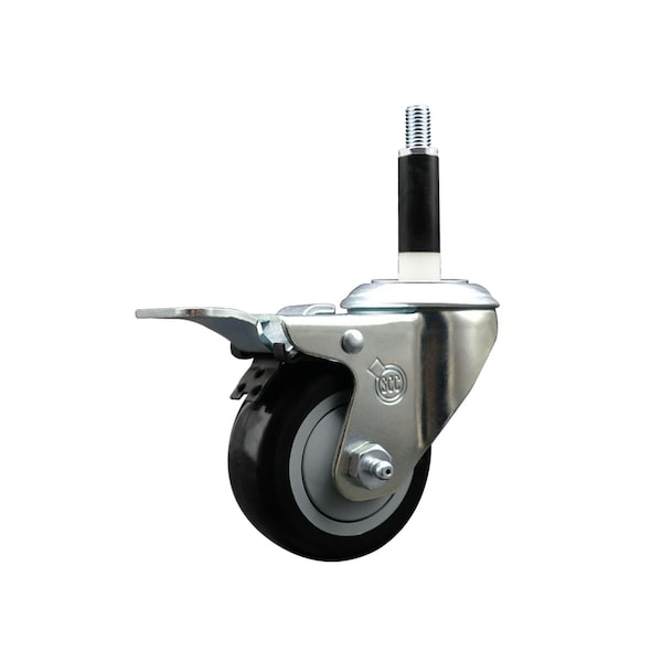 3'' Black Poly Swivel 7/8'' Expanding Stem Caster Total Lock Brake