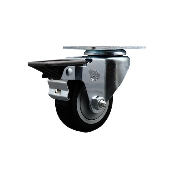 3'' Black Poly Wheel Swivel Top Plate Caster Posi Brake