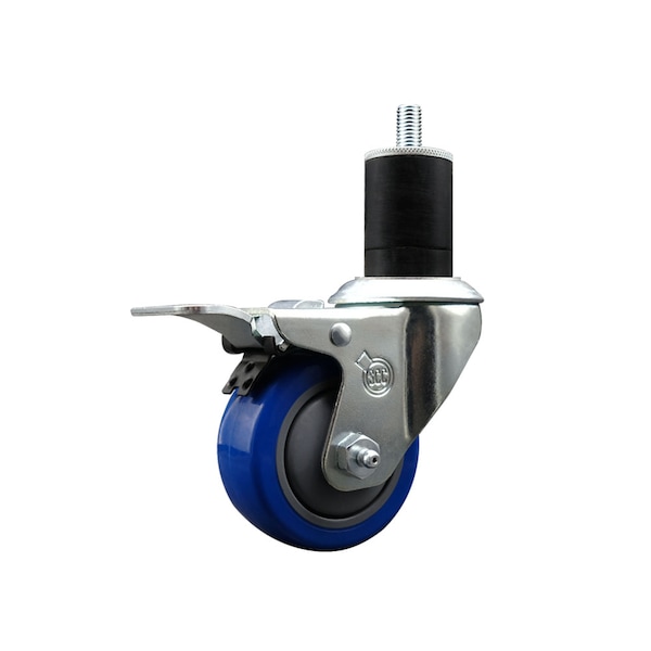 3'' Blue Poly Swivel 1-3/4'' Expanding Stem Caster Total Lock Brake