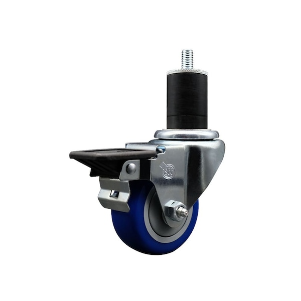 3'' Blue Poly Swivel 1-3/4'' Expanding Stem Caster with Brake