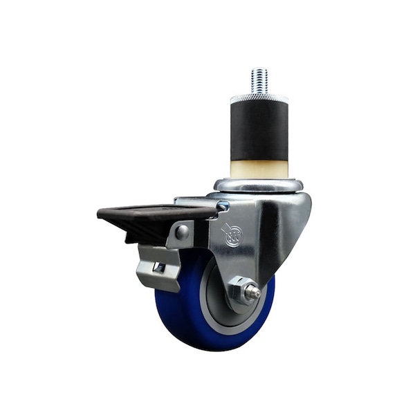 3'' Blue Poly Swivel 1-7/8'' Expanding Stem Caster with Brake