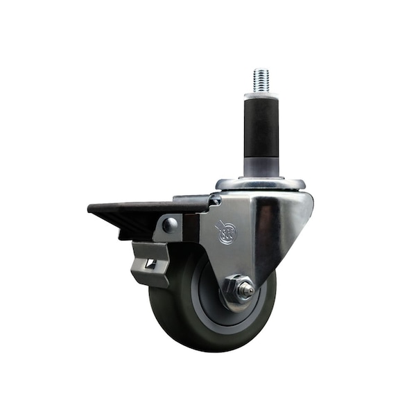 3'' Gray Poly Swivel 1-1/8'' Expanding Stem Caster with Brake