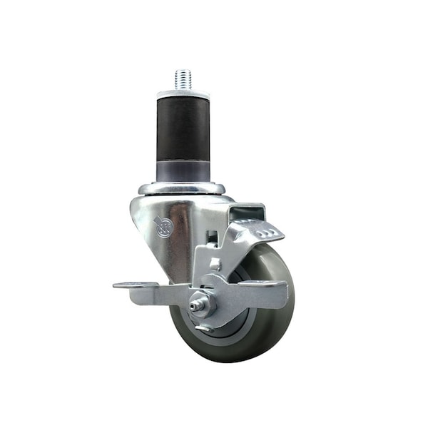 3'' Gray Poly Swivel 1-5/8'' Expanding Stem Caster with Brake