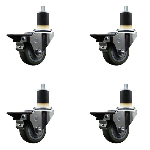 3'' Gray Poly Swivel 1-7/8'' Expanding Stem Caster Set with Brake, 4PK