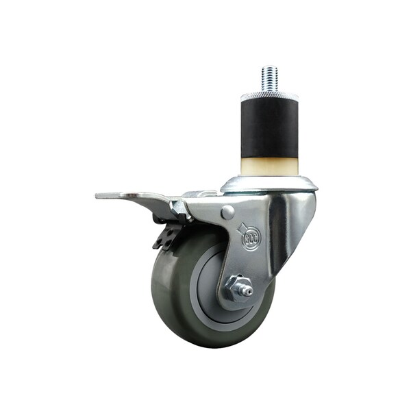 3'' Gray Poly Swivel 1-7/8'' Expanding Stem Caster Total Lock Brake