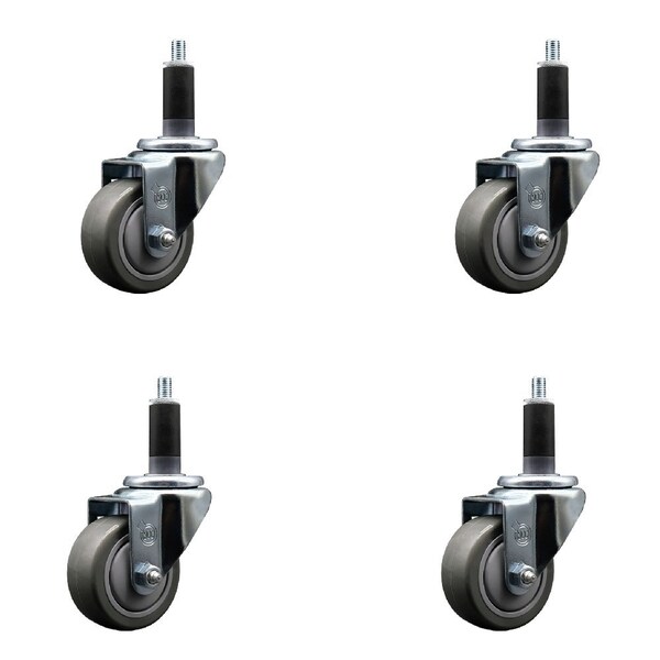 3'' Gray Poly Wheel Swivel 1-1/8'' Expanding Stem Caster Set, 4PK