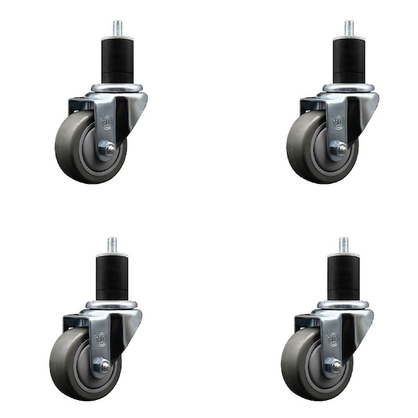 3'' Gray Poly Wheel Swivel 1-3/4'' Expanding Stem Caster Set, 4PK
