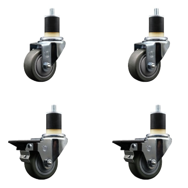 3'' Gray Poly Wheel Swivel 1-7/8'' Expanding Stem Caster Set 2 Brakes, 4PK