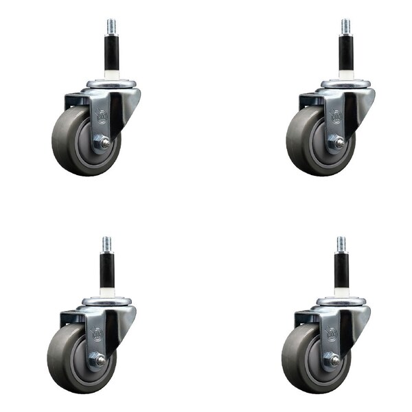 3'' Gray Poly Wheel Swivel 7/8'' Expanding Stem Caster Set, 4PK