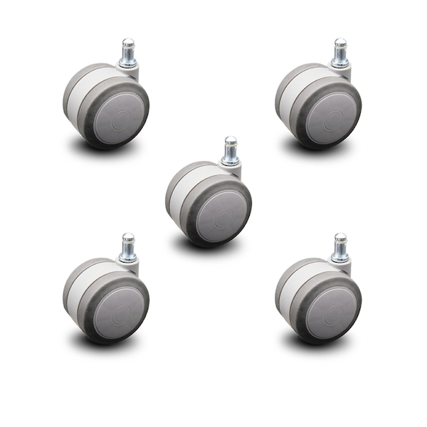 Listing is for five (5) 3" diameter gray twin wheel thermoplastic rubber chair, light furniture and fixture casters with a 7/16" diameter x 7/8" length grip ring stem. Supports up to 165lbs per caster.When searching for a reliable, mobile solution to your furniture needs, consider Service Caster’s Series 02 thermoplastic rubber twin wheel casters. With dependable functionality these casters are the perfect solution as new or replacement parts for chairs, tables, medical carts, or other home and office furniture. These casters are excellent in floor protection and offer a easy rolling and quiet ride. An ideal replacement for standard hard nylon wheel casters, Service Caster's Series 02 thermoplastic rubber twin wheel casters and will not mark, mar, or scuff wood, tile, or any other hard surface. With the finest craftsmanship and quality materials, these casters are built solid and ready to roll. Service Caster is unsurpassed in quality, reliability, and excellent customer service. Count on us to move you forward.