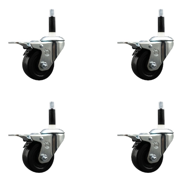 3'' Hard Rubber Swivel 7/8'' Expanding Stem Caster Set Total Lock Brake, 4PK