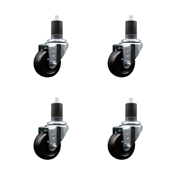3'' Hard Rubber Wheel Swivel 1-5/8'' Expanding Stem Caster, 4PK