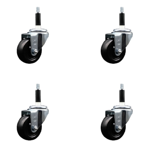 3'' Hard Rubber Wheel Swivel 7/8'' Expanding Stem Caster, 4PK