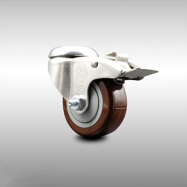 3 Inch 316SS Maroon Polyurethane Swivel Bolt Hole Caster with Total Lock Brake