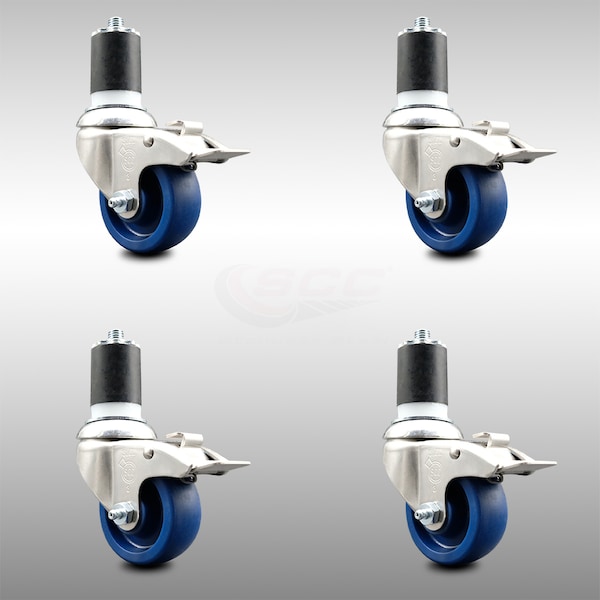 3 Inch 316SS Solid Poly Swivel 1-3/4 Inch Expanding Stem Caster Set Lock Brake