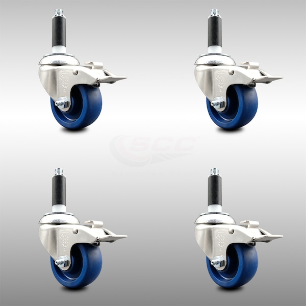 3 Inch 316SS Solid Poly Swivel 3/4 Inch Expanding Stem Caster Set Lock Brake