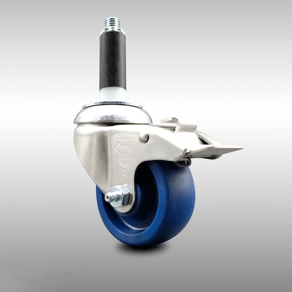 3 Inch 316SS Solid Poly Swivel 7/8 Inch Expanding Stem Caster Lock Brake SCC
