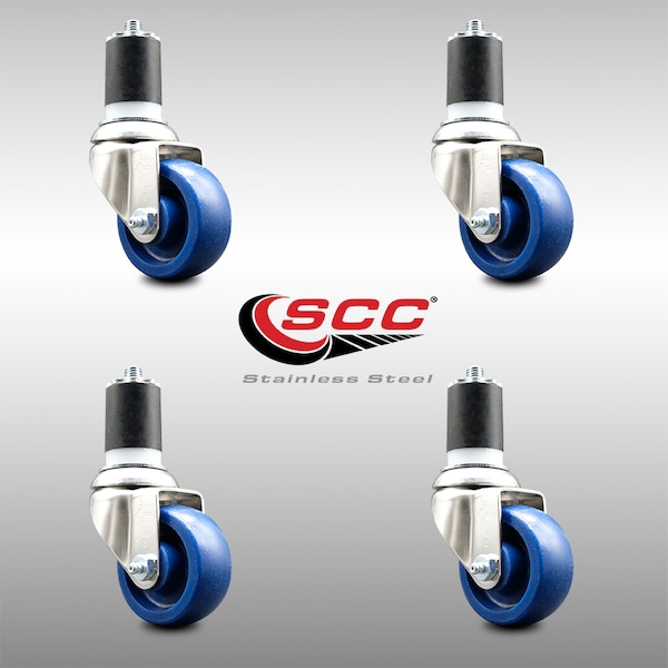 3 Inch 316SS Solid Polyurethane Swivel 1-3/4 Inch Expanding Stem Caster Set SCC