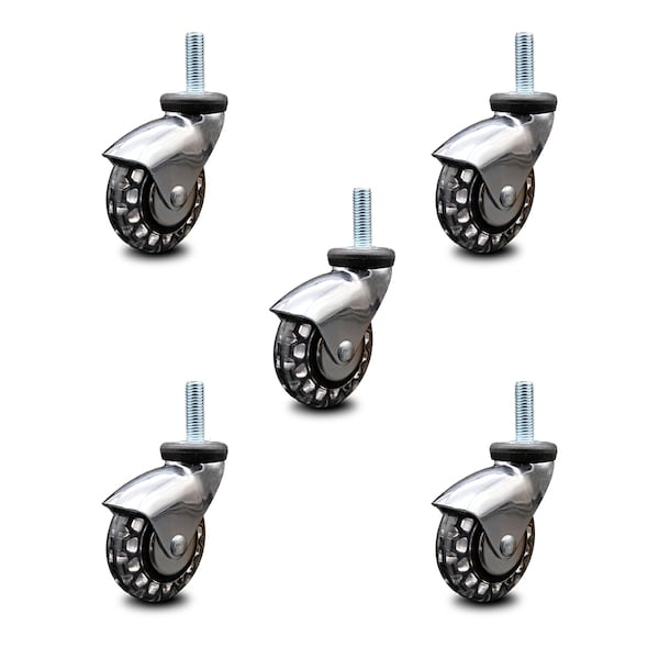 3 Inch Bright Chrome Hooded Polyurethane 3/8 Inch Threaded Stem Casters, 5PK