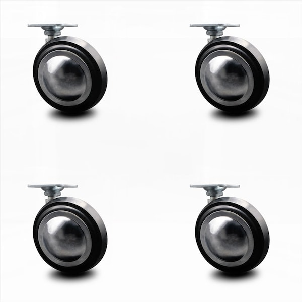 3 Inch Bright Chrome Soft Tread Ball Caster - Top Plate - SCC, 4PK