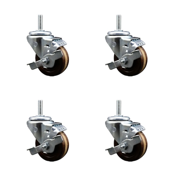 3 Inch High Temp Phenolic 34 Inch Threaded Stem Caster Set with Brake