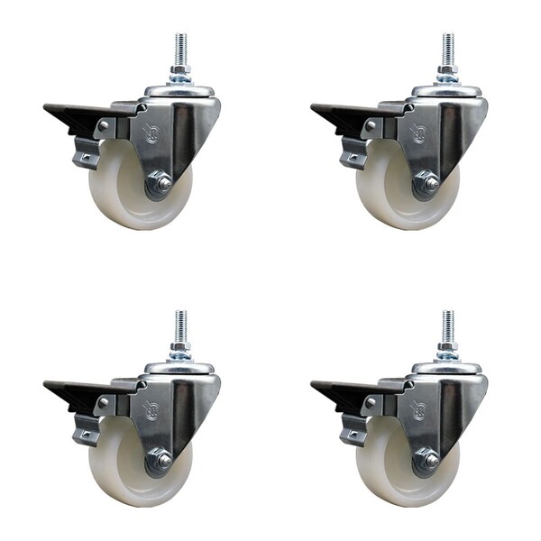 Listing is for a set of four 4 Service Caster Series 20 swivel casters, four 4 swivel 12MM threaded stem casters with posi lock brakes, 3 diameter by 114 wide nylon wheels Supports a total weight of 1,200lbs 300lbsper caster When searching for a reliable and durable solution to your caster needs, consider Service Caster Series 20 threaded stem nylon wheel casters The Service Caster Series 20 is ideal for light and medium duty material handling, carts, equipment, and shop projects The zinc plated finish provides durability under any condition, and the nylon wheels provide very low rolling resistance, show a high resistance to many aggressive substances, and are maintenance free under normal operating conditions Not only are they resistant to most chemicals and oils, but they will be sure to keep you safely moving forward