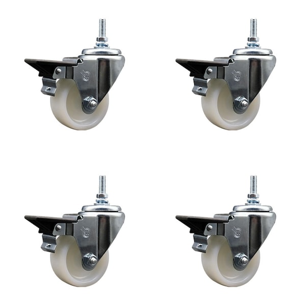 3 Inch Nylon 38 Inch Threaded Stem Caster Set with Brake