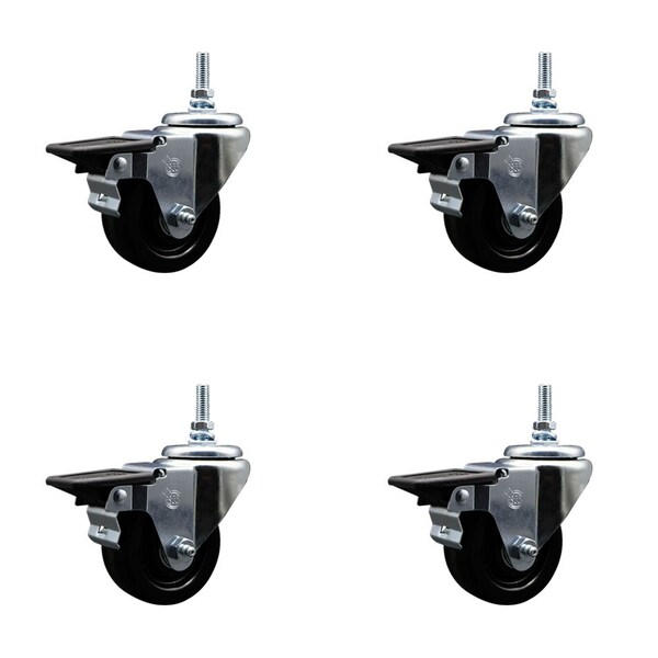 3 Inch Phenolic 12 MM Threaded Stem Caster Set with Brake