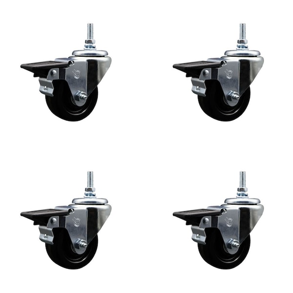 3 Inch Phenolic 38 Inch Threaded Stem Caster Set with Brake