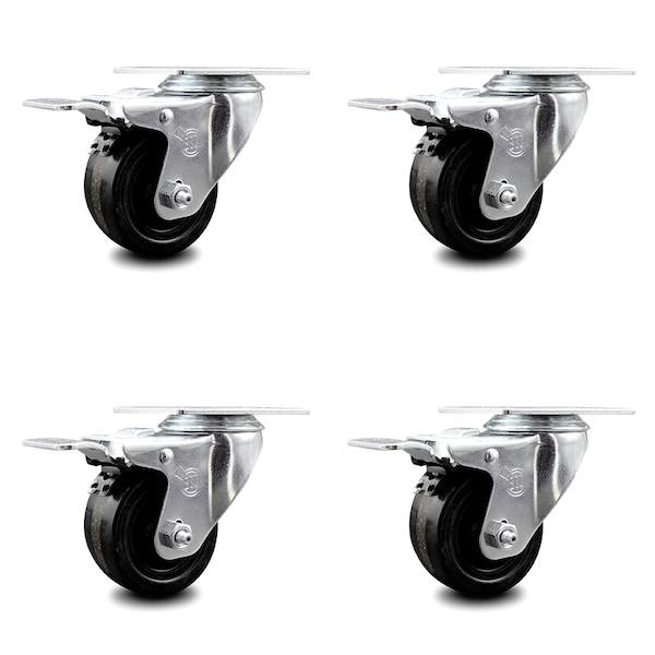 3 Inch Phenolic Swivel Top Plate Caster Set with Total Lock Brake