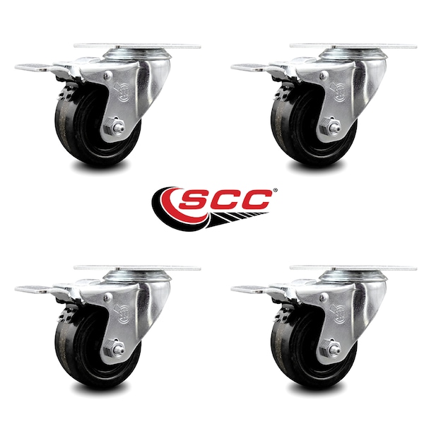 3 Inch Phenolic Swivel Top Plate Caster Set with Total Lock Brake