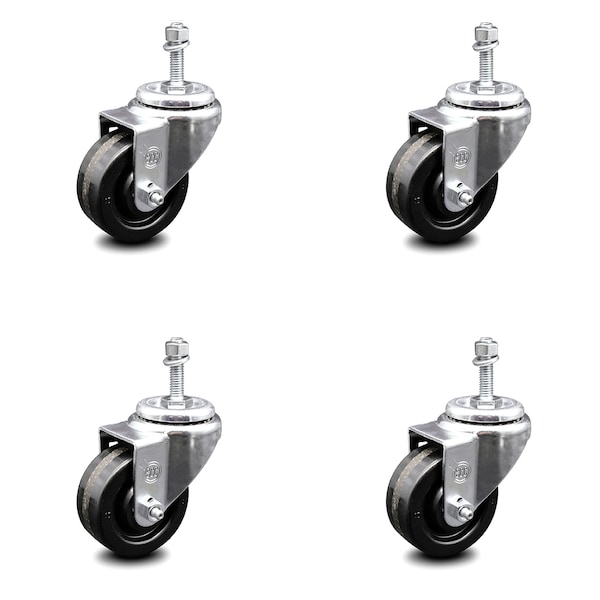 3 Inch Phenolic Wheel Swivel 3/8 Inch Threaded Stem Caster Set