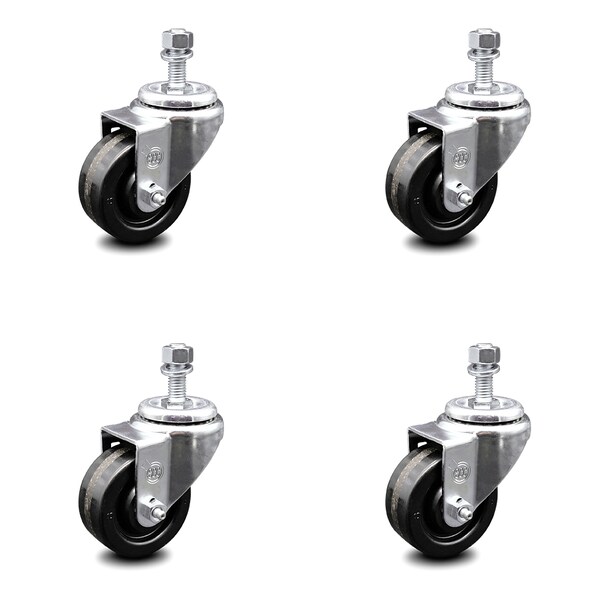 3 Inch Phenolic Wheel Swivel 3/8 Inch Threaded Stem Caster Set