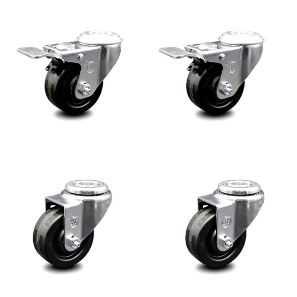 3 Inch Phenolic Wheel Swivel Bolt Hole Caster Set with 2 Total Lock Brake SCC