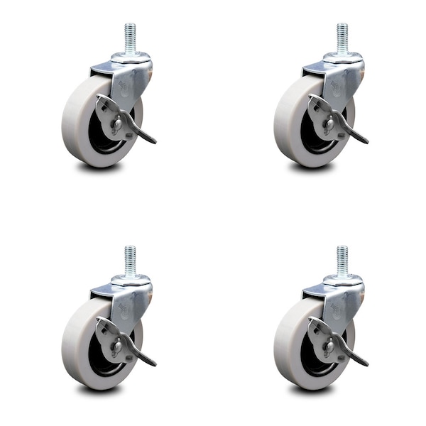 3 Inch Polyurethane Wheel 5/16 Threaded Stem Caster Set with Brakes SCC, 4PK