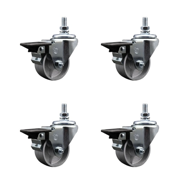 3 Inch Semi Steel 10 MM Threaded Stem Caster Set with Brake