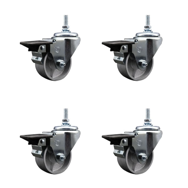 Listing is for a set of four 4 Service Caster Series 20 swivel casters, four 4 swivel 12MM threaded stem casters with posi lock brakes, 3 diameter by 114 wide semi steel cast iron wheels Supports a total weight of 1,200lbs 300lbsper caster When searching for a reliable and durable solution to your caster needs, consider Service Casters Series 20 sleeve bearing semisteel cast iron casters The Service Caster Series 20 is ideal for light and medium duty material handling, carts, equipment, and shop projects The zinc plated finish provides durability under any condition, while the semisteel wheels are abrasion resistant and rugged, maintaining effortless rolling under heavier loads, and provides a costeffective solution over steel wheels Sleeve bearings provide a metal sleeve inserted in a wheel to rest directly on the axle This option is only recommended when rolling ease is less critical Mounting options include top plate, bolt hole and standard and metric threaded stem sizes